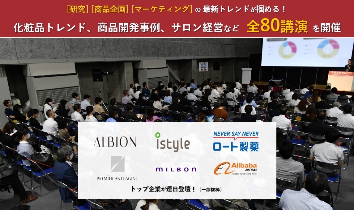 化粧品トレンド、商品開発事例、サロン経営など 全80 講演を開催!