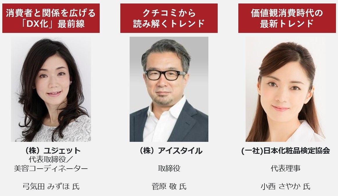「オンライン接客」「AI肌分析」といったデジタルツールにより「売り方」「買い方」にも大きな変化が起きている今、ブランド側と消費者との間でちょうどいい関係のポイントはどこなのか。生活者のニーズに応え続けていくためには何が必要なのか。生活者たちの「今」を知り、深く考える事ができる講演です。また、マスクによる影響や、今後注目すべきアジア市場、男性美容の市場やトレンド解析結果なども紹介されるため、市場トレンドを知りたい方にとって またとない機会です。