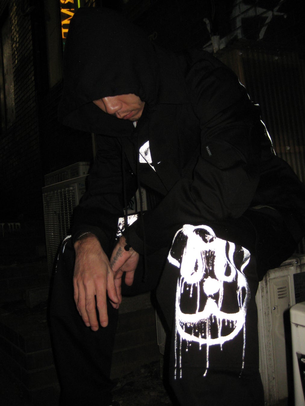 Tシャツ、フーディーにはCHITOのシグネチャーである犬のグラフィックをフロントに配置しました。ラフなスプレータッチで描かれた犬の表情と黒のミニマルなベースが鮮やかなコントラストを生み、ストリートアートの即興性とユーモアが共存するCHITOの世界観を、日常に取り入れられるアートピースとして昇華した一着です。