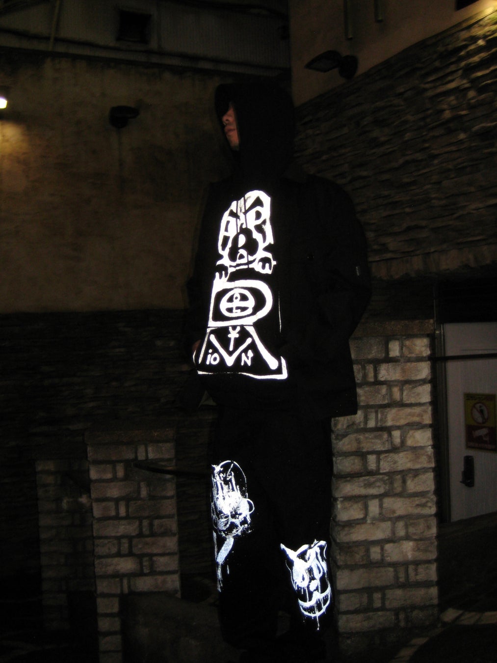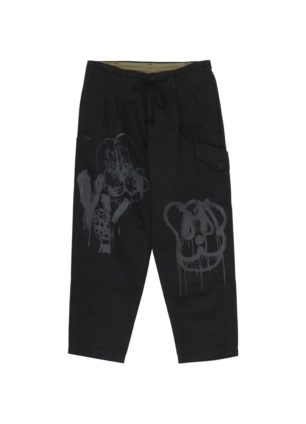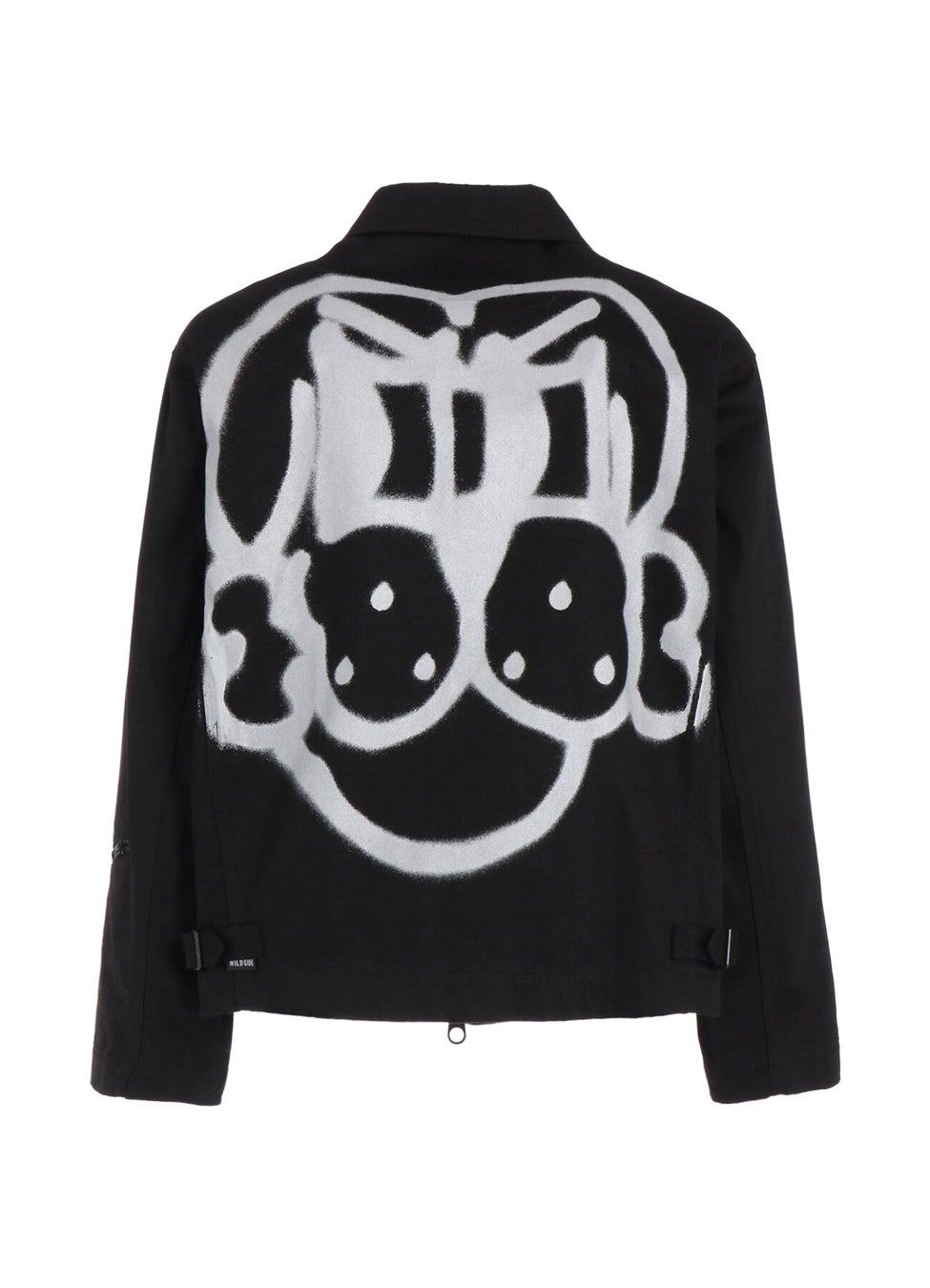 また、WILDSIDEの定番素材であるコットンチノ生地で仕立てたモッズコートやジャケット、パンツにもエアブラッシュ表現によるCHITOのアイコニックな犬のモチーフをプリントで大胆にレイアウト。リフレクティブインクを採用したプリントは、黒の深みと調和しながらも存在感を放つ仕上がりとなっています。