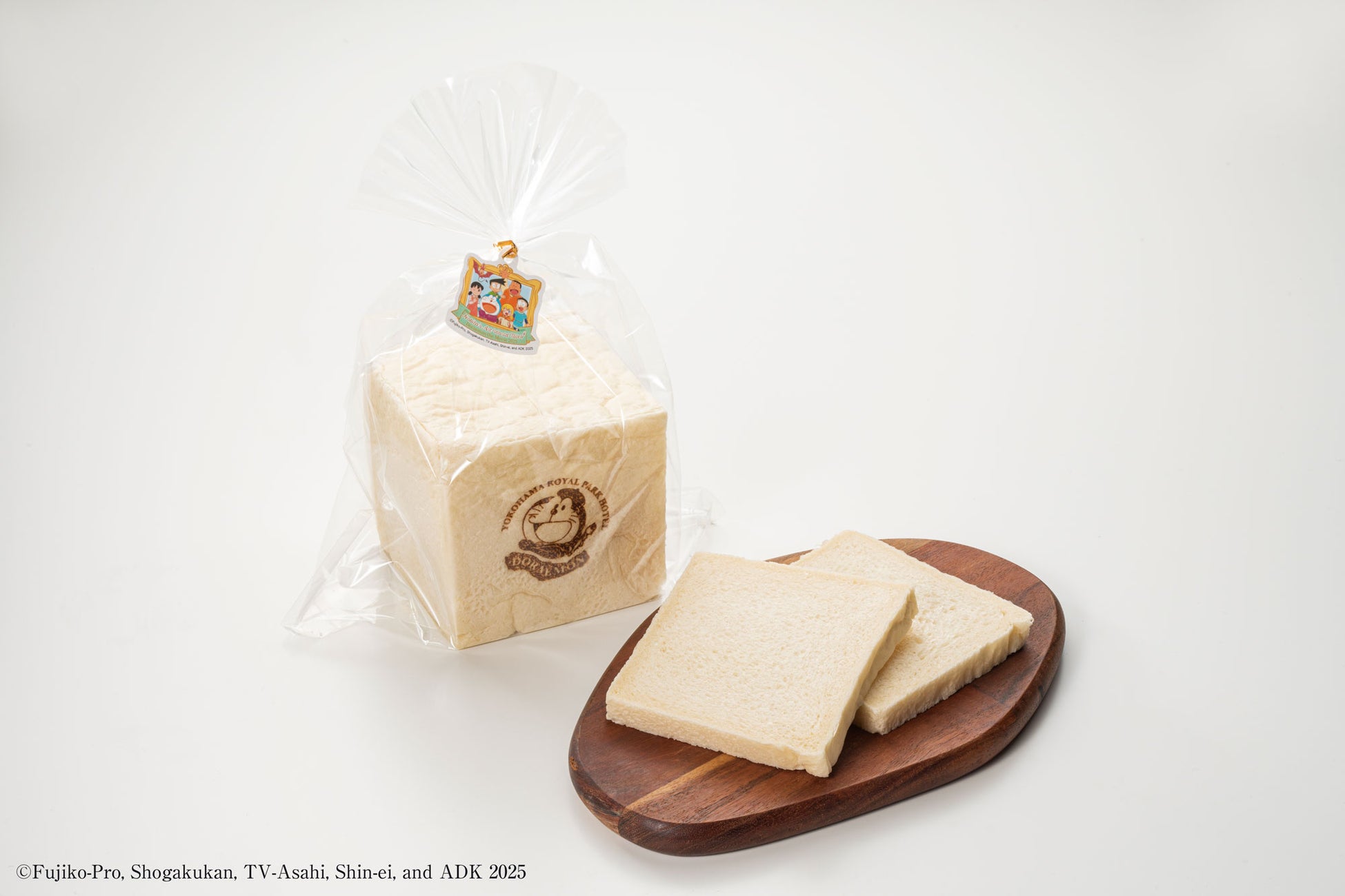 ベレー帽をかぶった画家のようなドラえもんの焼き印がアクセント。廃棄が出ないよう耳まで白く作られた食パンは、最後までふわふわとした食感をお楽しみいただけます。