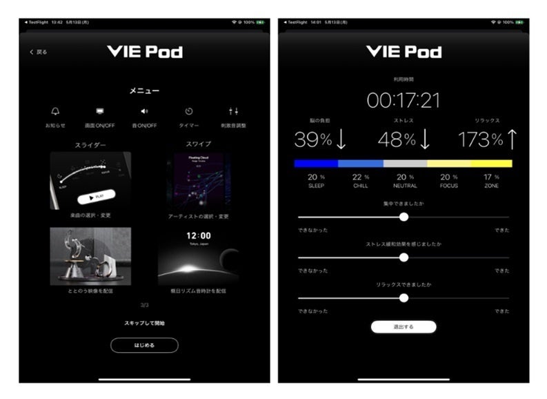 ニューロミュージックとは、ユーザーのなりたい感情や気分に導いてくれるよう設計された脳に刺激を与える音楽で、VIEが提供しているソリューションです。ユーザーの「ストレス軽減」「集中」「ととのう」など理想的なコンディションをサポートします。今回、東京建物のオフィスビルに「VIE POD」モデル機体を納品します。