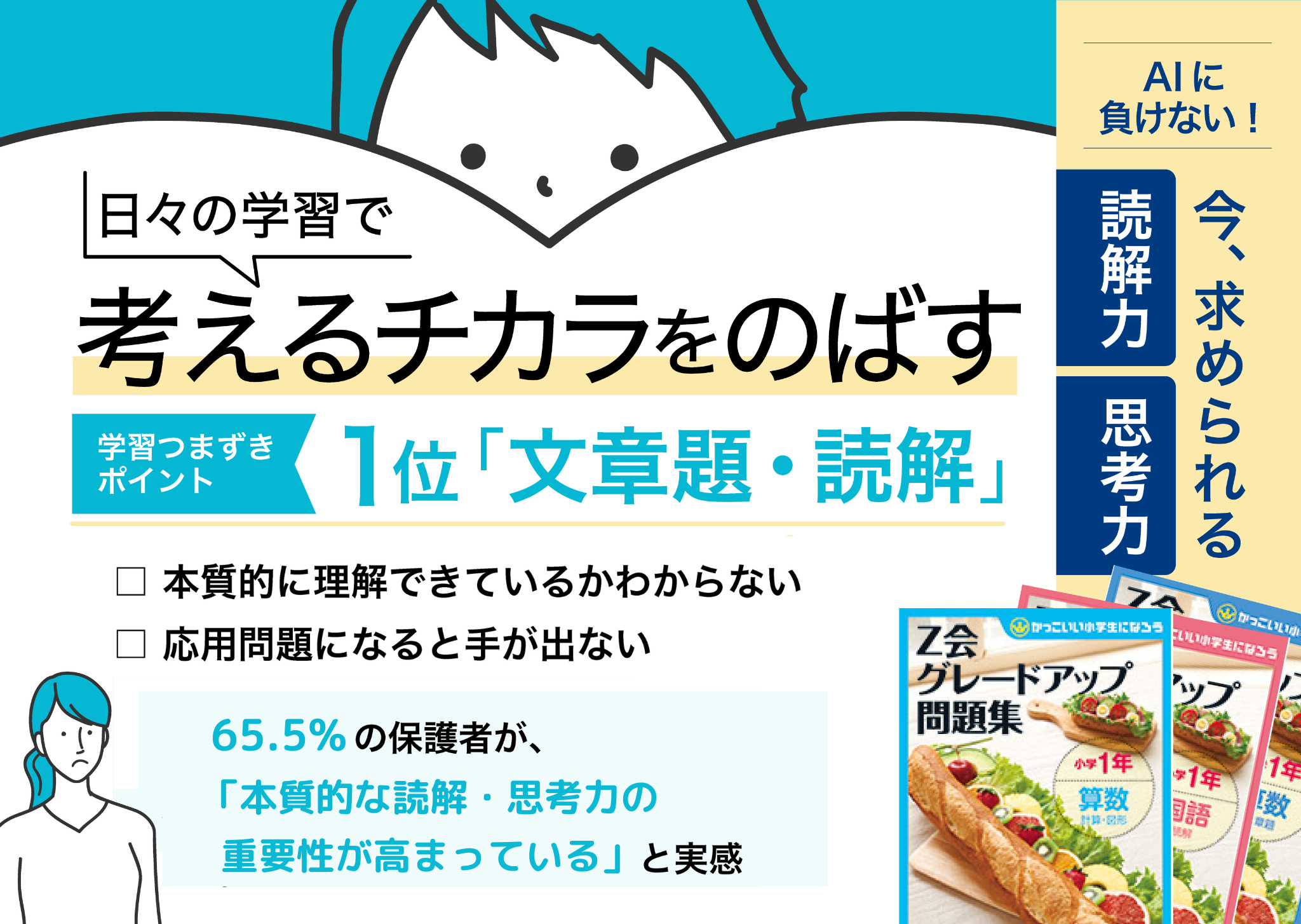 65.5%の保護者が、「本質的な読解・思考力の重要性が高まっている」と実感。背景には「AI活用」や「大学入学共通テスト」など時代の変化あり。