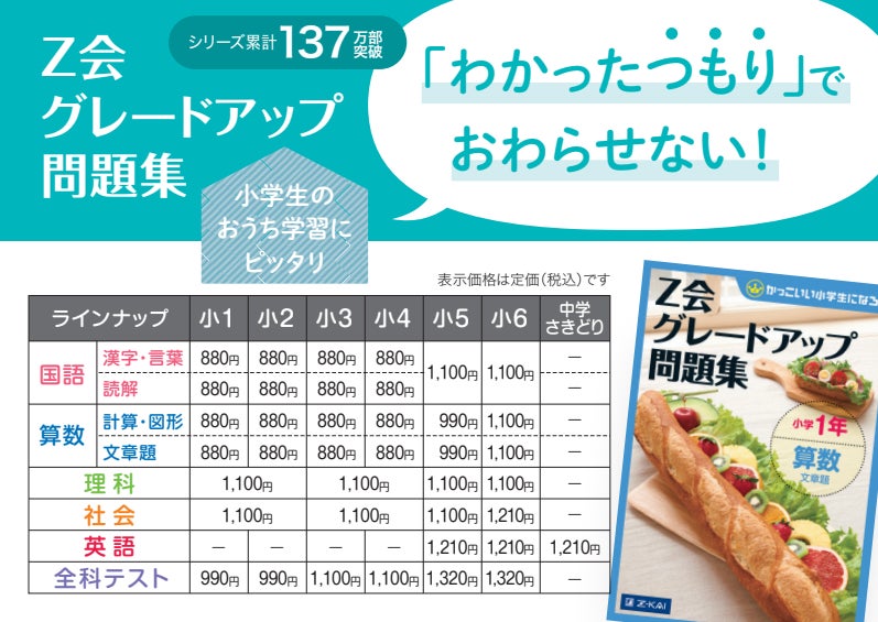 Z会の「グレードアップ問題集」シリーズは、「わかったつもり」で終わらない、しっかり考えて、答えを自分で導き出す力を育める問題集です。