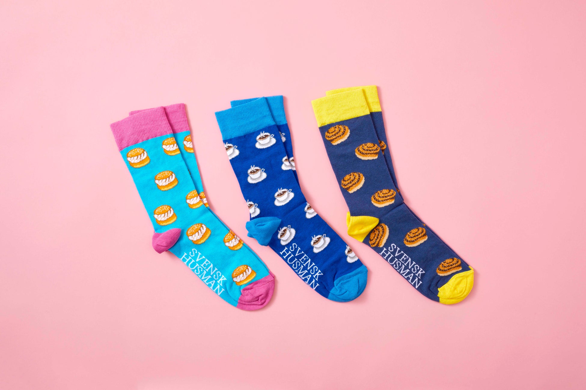 スウェーデンのスウィーツや「fika(フィーカ)」をイメージした柄の、カラフルでおしゃれなソックス。