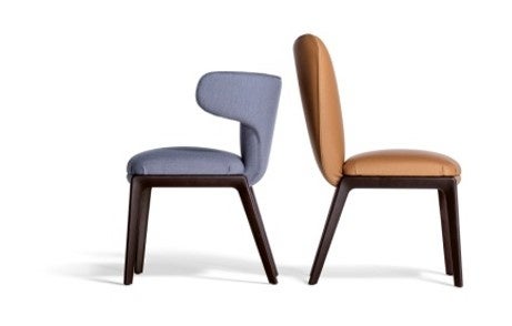 ハイバック仕様の背もたれと、贅沢なクッション性を備えた座面が、優雅で心地よい座り心地をもたらします。張地にはPelle Frau®レザーまたはファブリックを全面に使用し、落ち着いた時間と会話を楽しむダイニング空間にふさわしい一脚です。脚部にはソリッドアッシュ材を採用し、仕上げは複数のバリエーションからお選びいただけます。