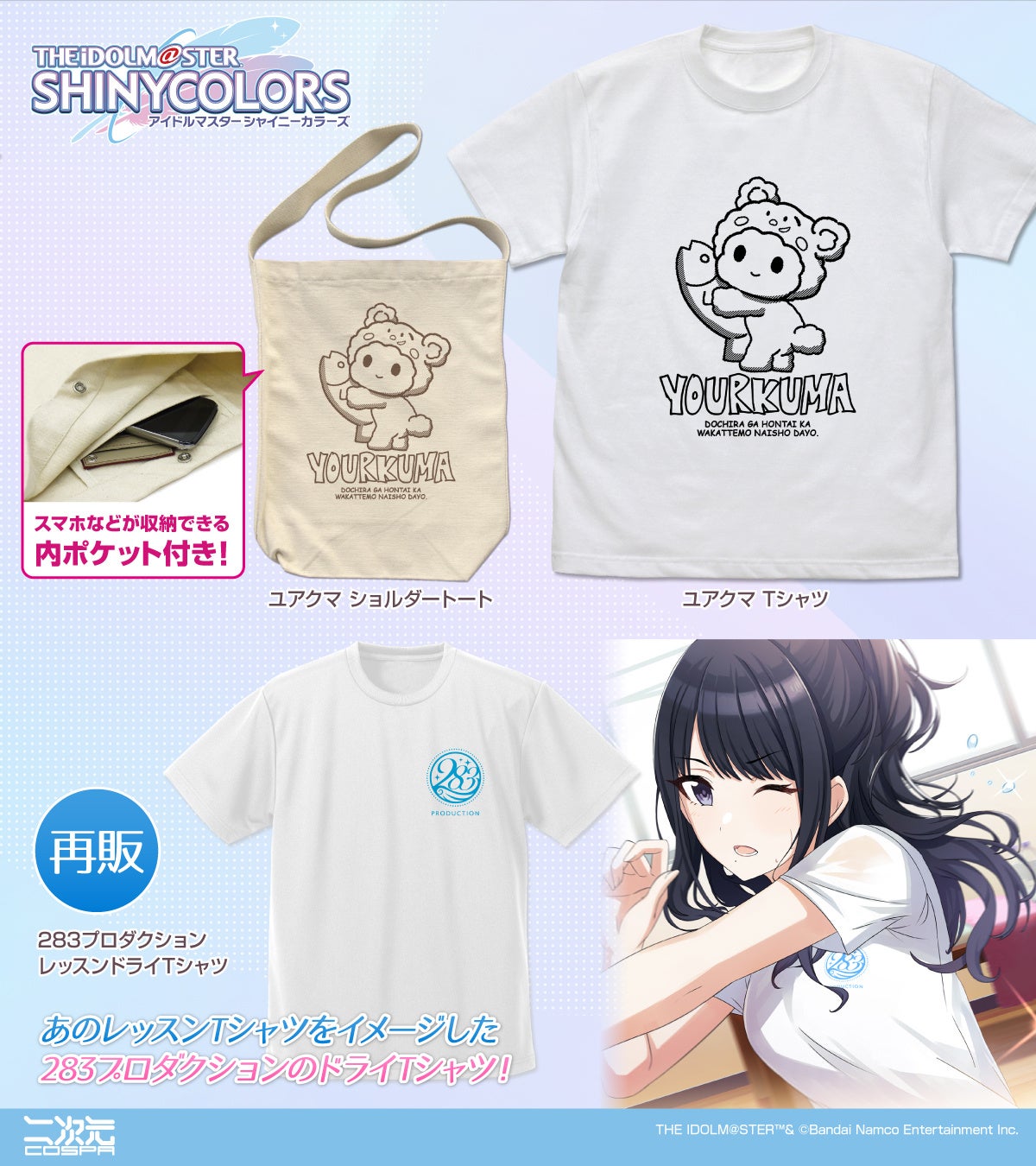 2024年10月5日(土)・6日(日)武蔵野の森総合スポーツプラザ メインアリーナで開催の〈THE IDOLM@STER SHINY COLORS 6.5th Anniversary LIVE “Chapter 283”〉に向けて、二次元コスパから新グッズが登場です。
