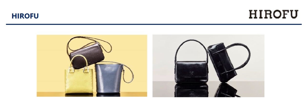 HIROFUは、1978年の設立以降、バッグや婦人靴等の質の高い革小物を中心として、「Simple」「Minimal」「Contemporary」をコンセプトに、時代やトレンドに振り回されることのない独自のスタイルを築いてきました。2019年3月にW&Dデザインファンドで投資実行後は、これまでのスタイルは維持しつつ、ワールドグループが有する事業ノウハウや事業プラットフォームを活用しながら、さらなる成長を実現してまいりました。
