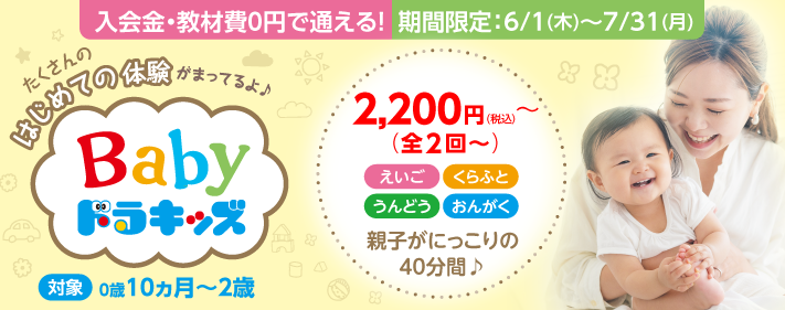 「Baby ドラキッズ」は入会金・教材費0円、参加費のみで受講可能です。