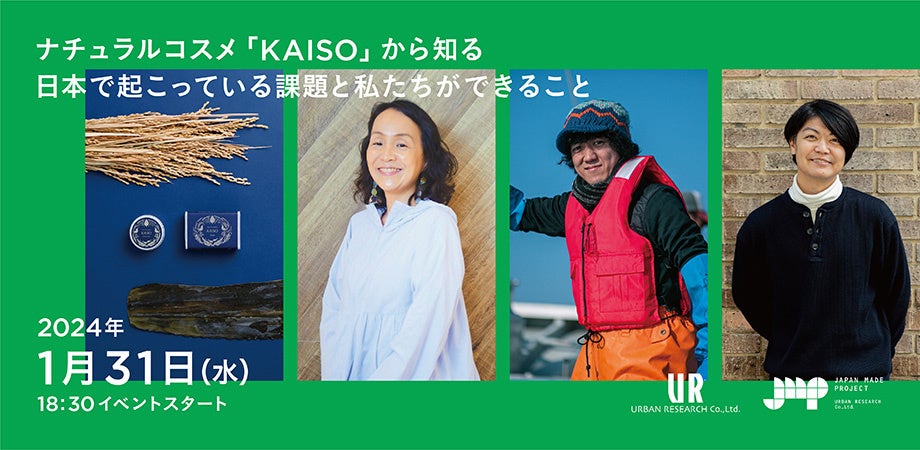 本企画は、株式会社アーバンリサーチが日本各地に住む人たちとともに地域の魅力を発信する「JAPAN MADE PROJECT」の一環です。KAISOは東北の海と山で生まれた未利用資源を活用しており、環境課題解決への貢献を目指した企画でもあります。