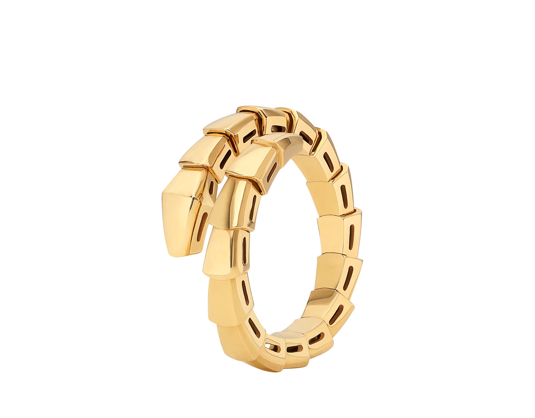 グラフィカルかつ象徴的なデザイン要素と3つのゴールドで表現される3つのバリエーション、そして無限に広がるスタイリング。6つの新作クリエイションは、アイコニックな「セルペンティ ヴァイパー」のブレスレットとリングのプレーンなスタイルで18Kのイエローゴールド、ピンクゴールド、ホワイトゴールドの魅惑的な単彩を纏って登場します。最先端の幾何学模様と官能的な曲線が織りなす独自のシナジーが、内側のゴールドのコイルに一つひとつ取り付けていく、ブルガリのクラフツマンシップによる緻密な工程により独創的に表現され、「セルペンティ」の象徴である柔軟性としなやかさが生み出されています。本クリエイションには、環境に配慮したゴールドを使用したことを証明する独自の証明書が今回初めて提供されます。ブルガリでは、2022年1月より、ジュエリーの100%が完全に追跡可能で、認証を受けた供給源から調達したゴールドを使用しています。これは、持続可能なラグジュアリーの分野におけるブルガリの取り組みを示すうえで、ユニークで画期的な出来事となっています。