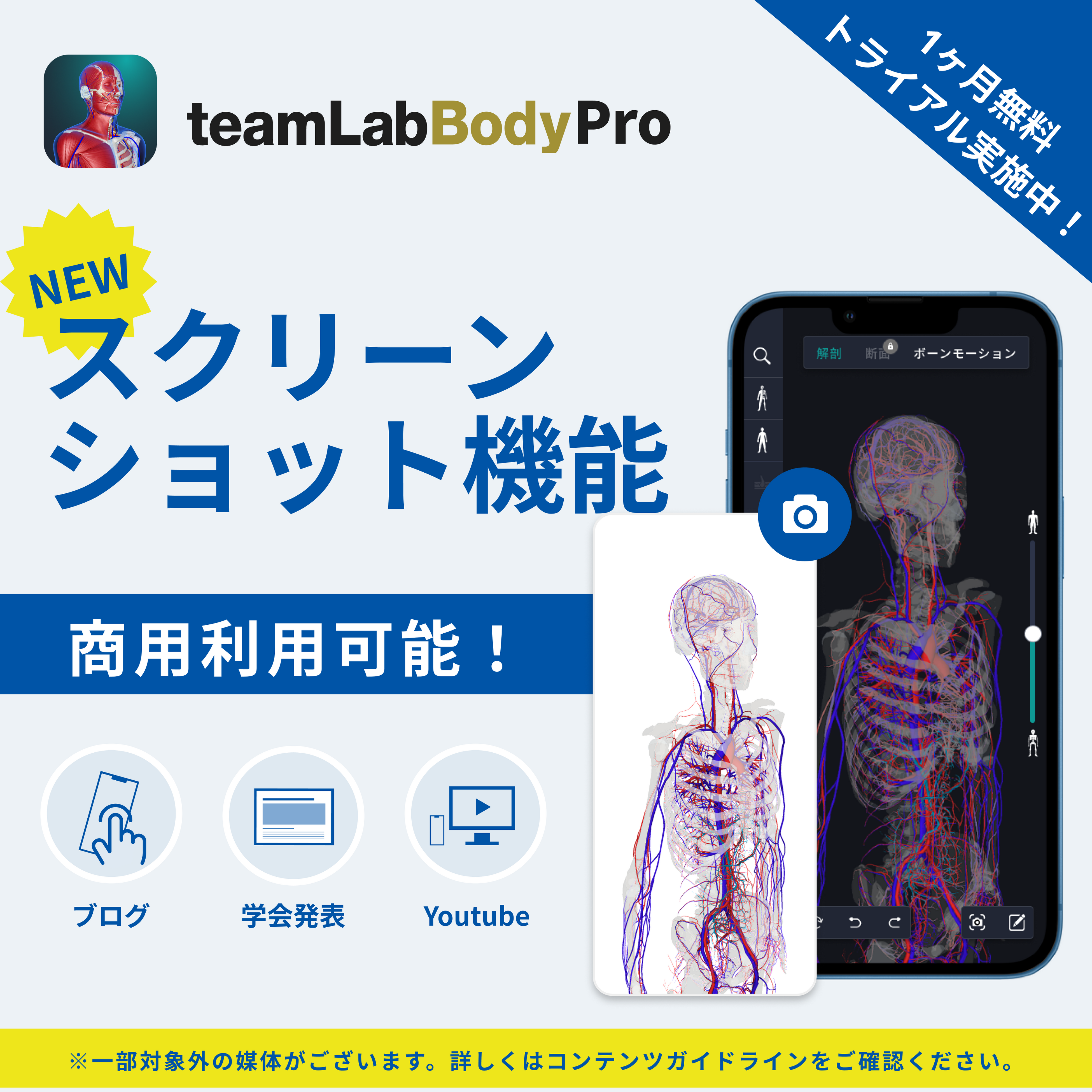 チームラボが開発した3D人体解剖学アプリ「teamLabBody Pro」の人体画像、動画が、商用利用可能に。スクリーンショット機能も追加。
