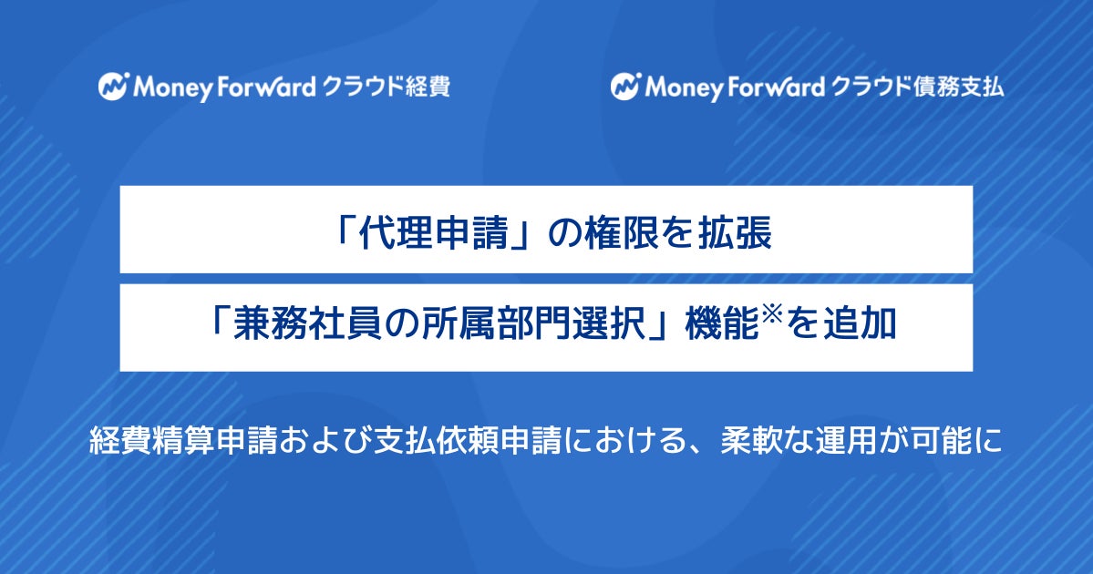 「代理申請」の権限を拡張、また「兼務社員の所属部門選択」機能を追加