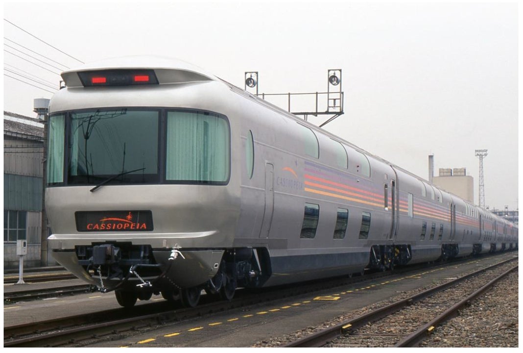寝台特急カシオペアは、1999年7月16日に上野~札幌駅間で運行を開始しました。JR初のオール2階建寝台客車で、より快適で魅力ある寝台列車の旅を提供するために「快適空間を実現した寝台列車」をコンセプトのもと、全室A個室寝台列車として開発されました。オール2階建て車両により、広いスペースを確保し、外観は白を基調に赤・青・黄色のストライプを配したスマートなデザインとしました。編成は寝台車10両、食堂車1両、ラウンジ車1両の12両編成で客室は大きく分けて3種類あります。