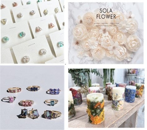 フラワーロスゼロを目指すサステナブルフラワーキャンドル(日本サステナブルフラワー協会/写真右下)