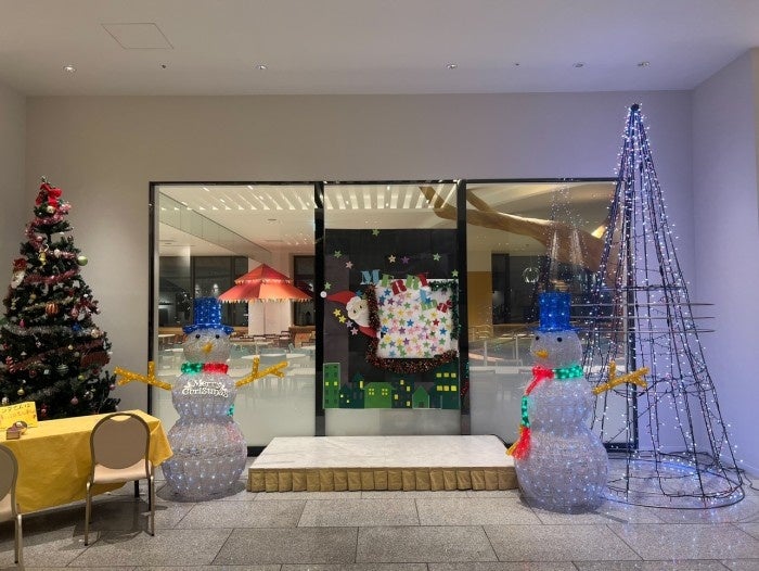 室内では季節ごとに背景が変わり、今回はクリスマスの装飾が飾られています。