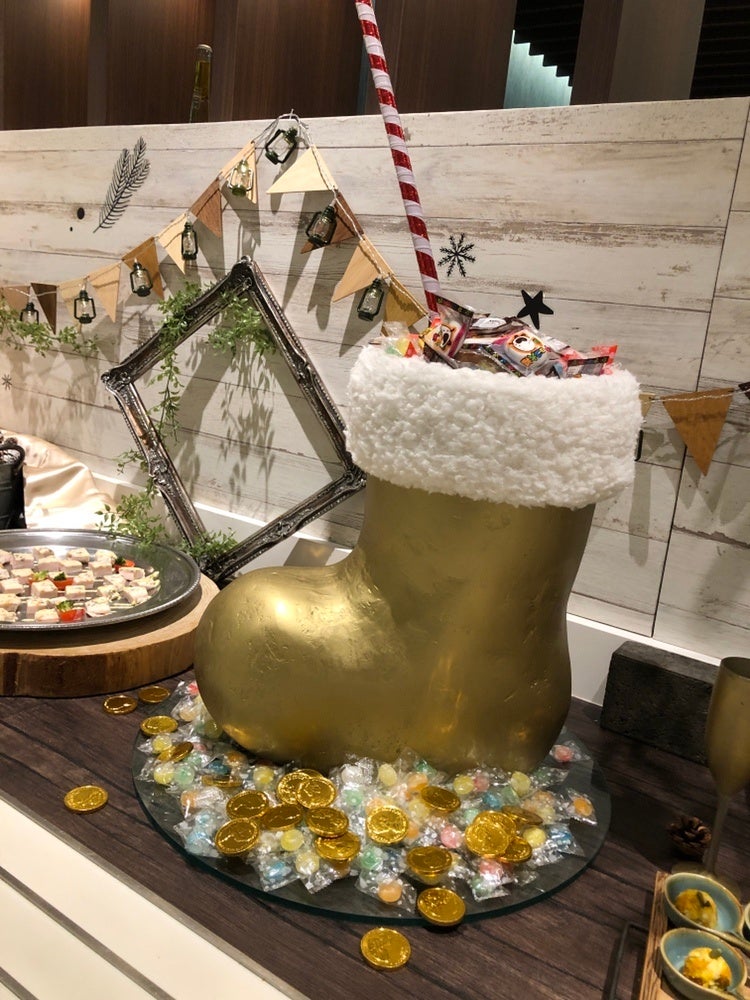 金色の巨大ブーツは施設スタッフさんの力作です。