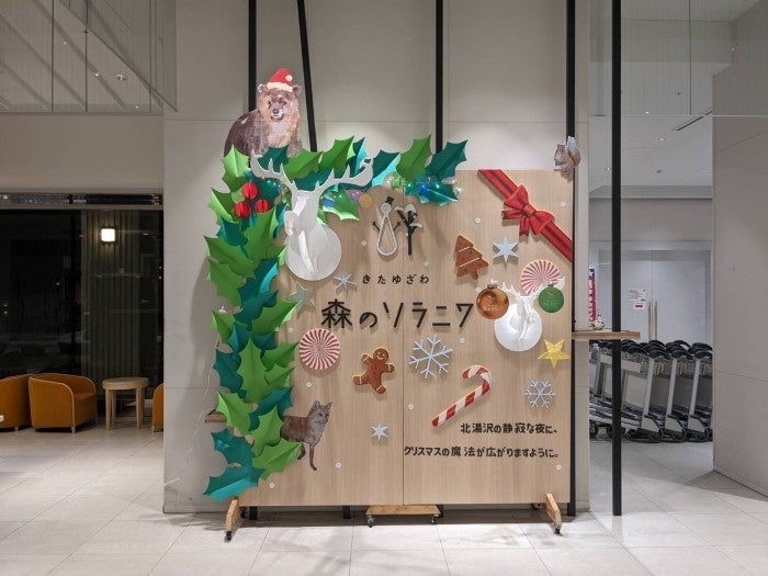 北湯沢温泉にある3館【緑の風リゾートきたゆざわ】【きたゆざわ森のソラニワ】【湯元ホロホロ山荘】クリスマス装飾をご覧ください。
