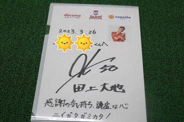 親子共々とても楽しめました。子どもはたくさんお土産をもらって、喜んでいました。初めてのビッグスワンに初めてのサッカー観戦で、子どもに良い経験をさせてあげられて嬉しく、感謝です。「今日は楽しかったね」と子どもも言っていました。