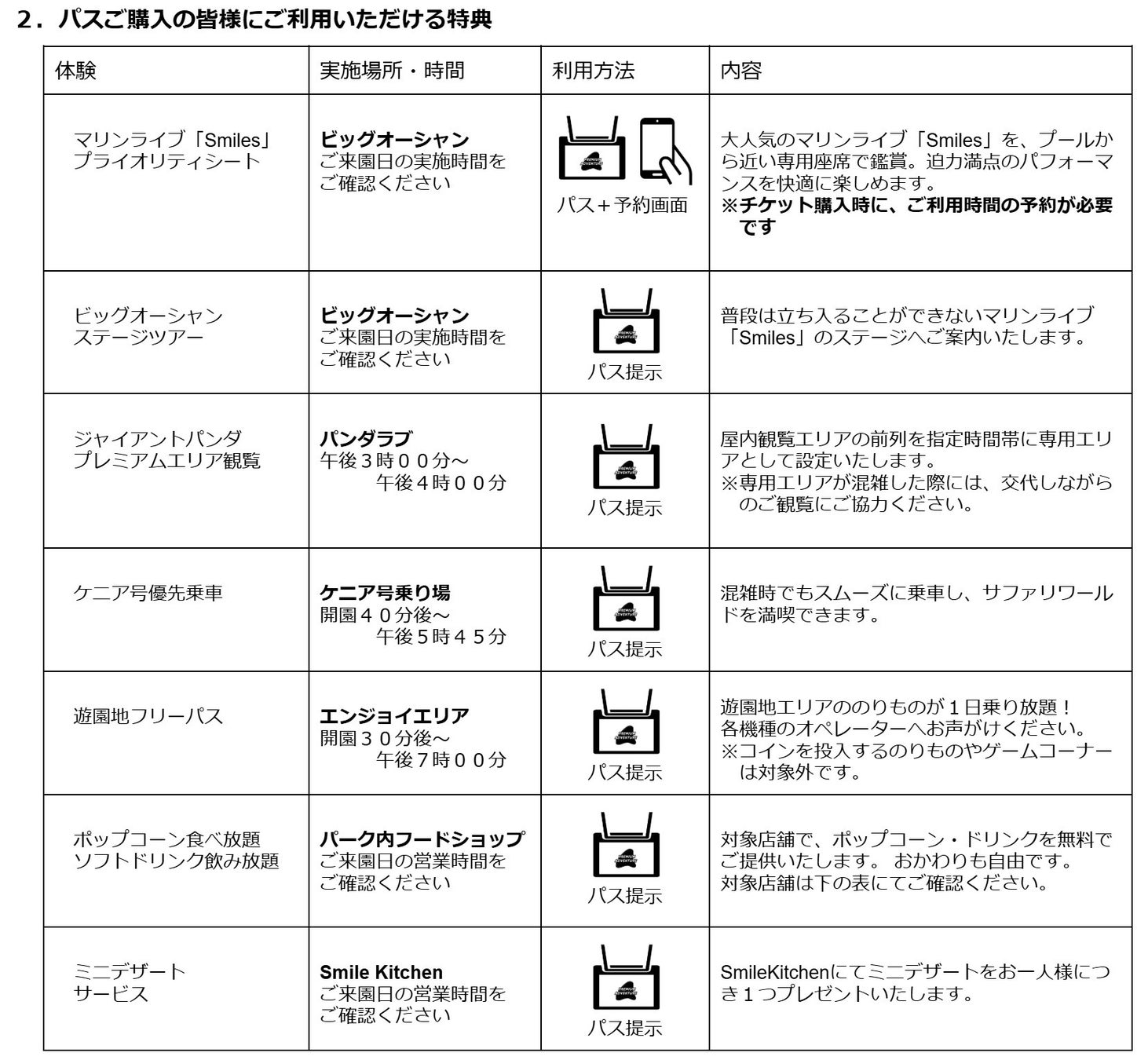 ※特別サファリツアー、マリンライブ「Smiles」プライオリティシートへご参加の際には