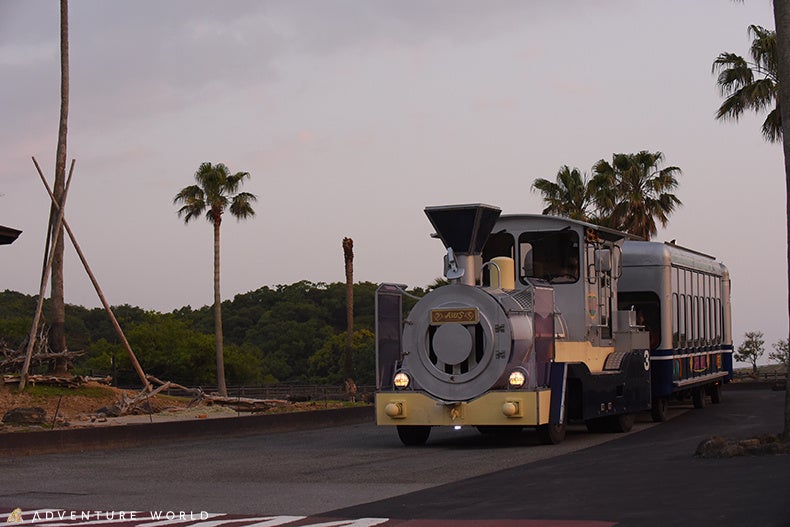 内容:夕暮れ時のサファリワールドを列車タイプの専用車