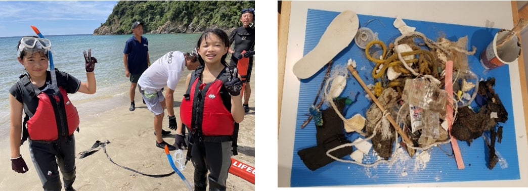 また、海に入らなかった児童たちは砂浜を清掃しました。一見、きれいに見える熊井浜ですが、実は砂の中に、細かいプラスチックの破片が落ちていることに驚いていました。