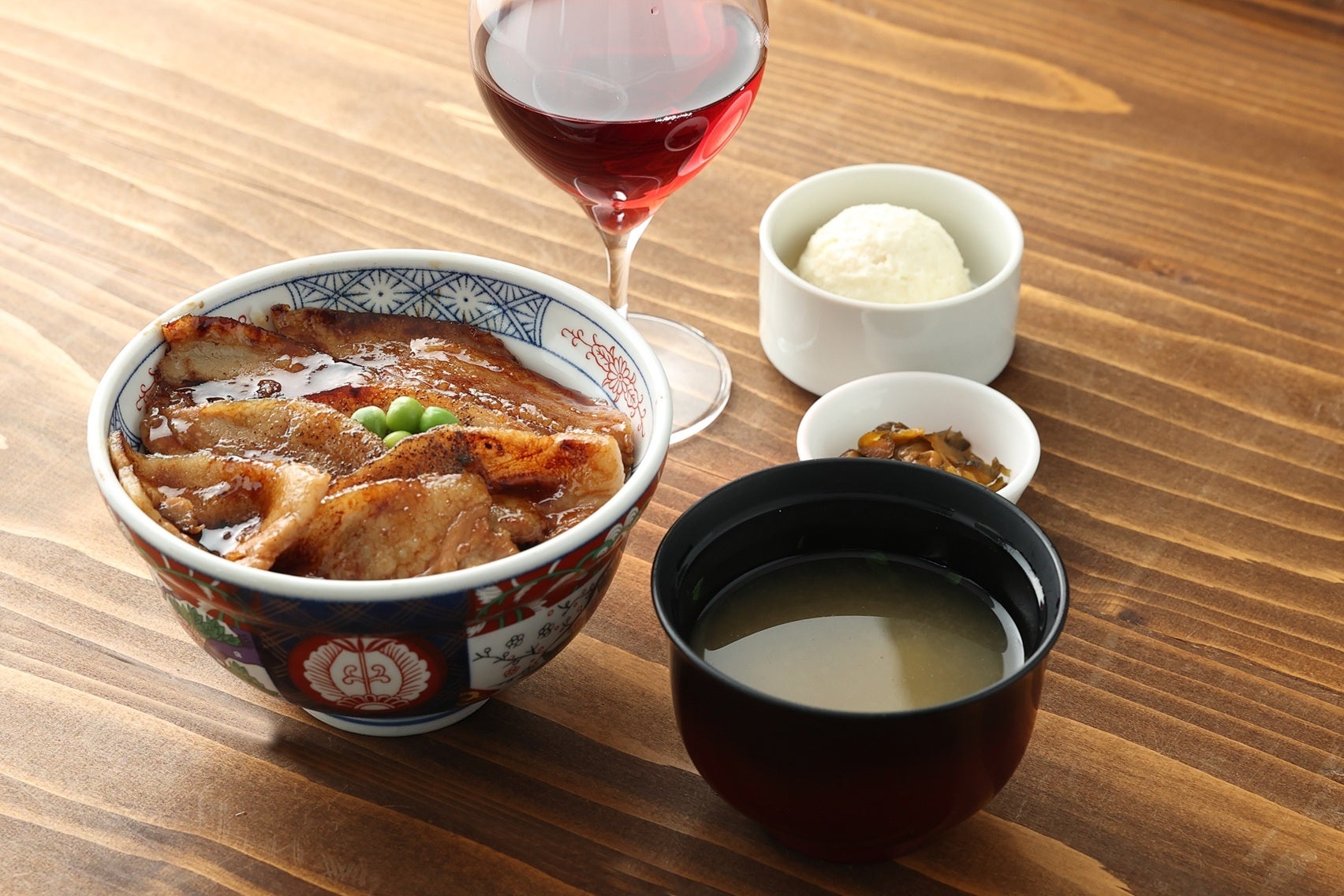 赤ワインの豊かな果実味と甘みが、豚丼の特製ダレと相性が良く、肉の香ばしさを引き立てます。またワインの酸味は脂をやわらげ、バランスよいペアリングです。つい次のひと口が進みます。
