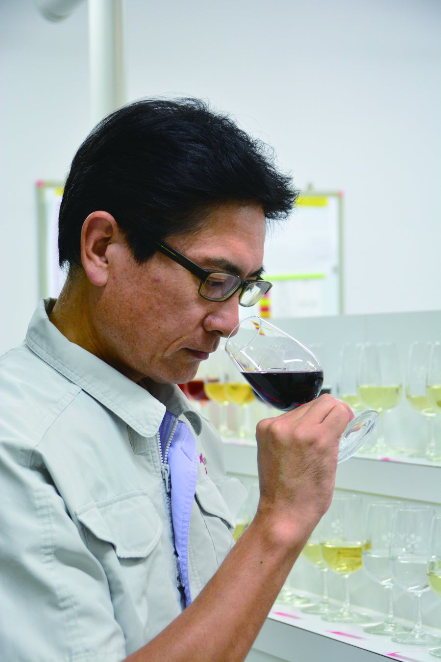ワイン製造工程の節目ごとに数値には表れない微妙な違いを目・鼻・そして舌で確認するテイスティングの匠。ワイン製造のすべての工程に関わり、工場で製造するワインの品質を維持している。ワインの普及に力を注ぎ、ワインの魅力を的確に説明して業界の活性化に尽力している。