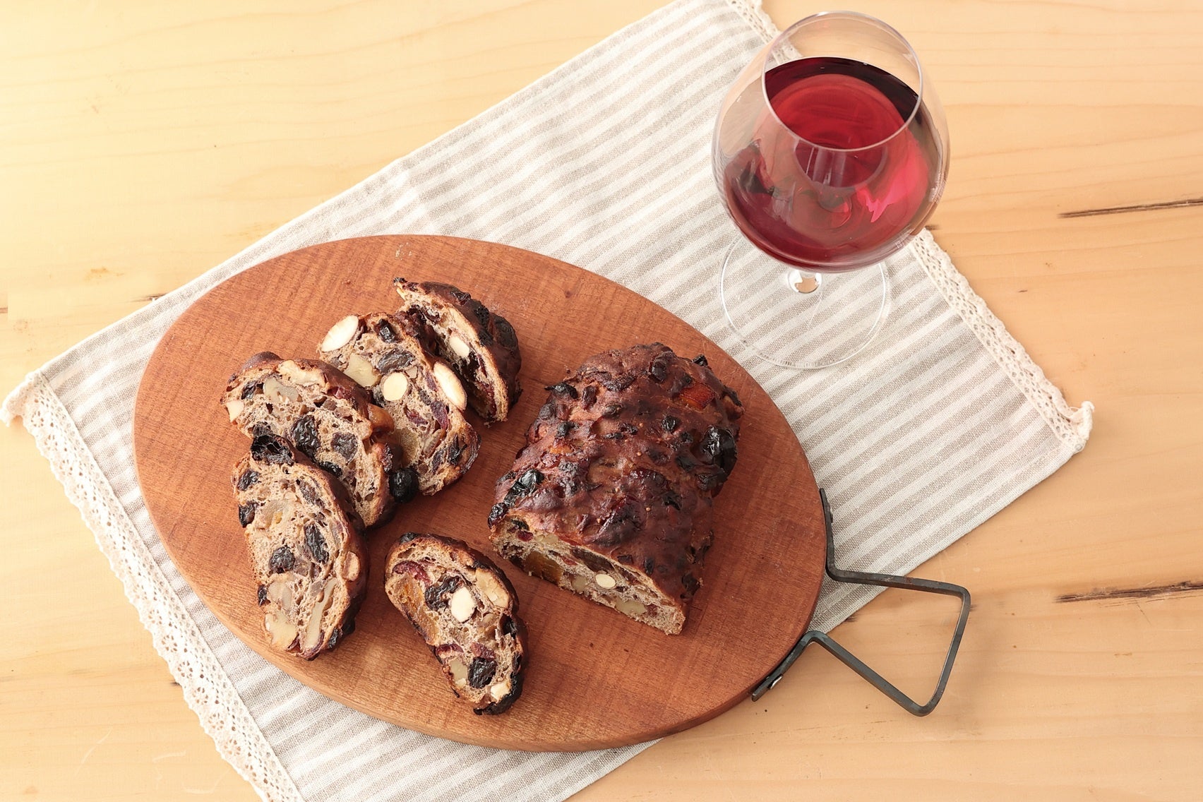 ワイン由来の果実味がドライフルーツの甘酸っぱさを引き立て、双方の余韻が心地よく続きます。ワインの豊かなボディと濃厚なパンとの満足感あるペアリングです。