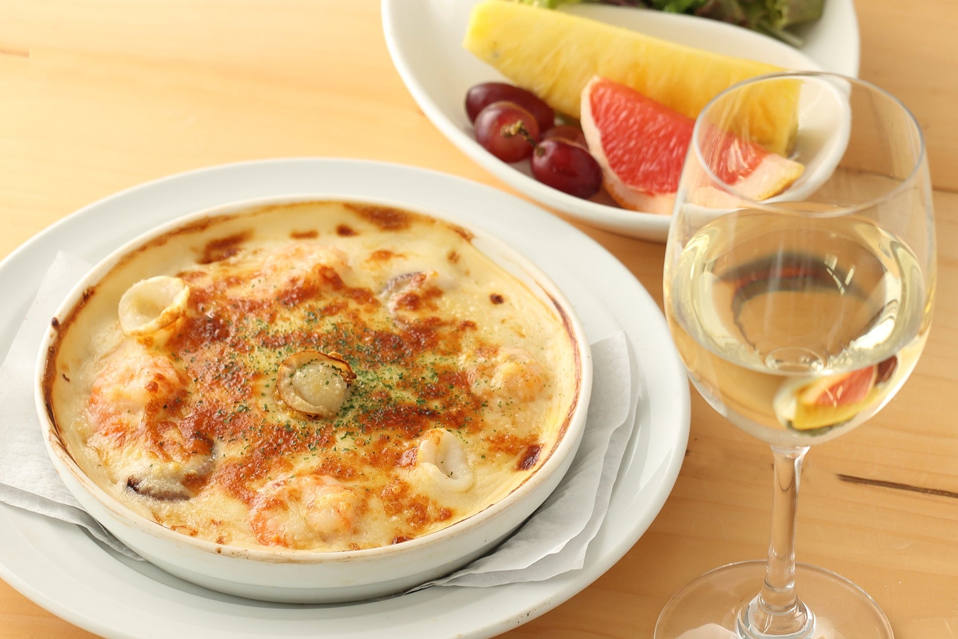 いきいきとした果実味と爽やかな酸味が特長の白ワインです。ワインの果実味が魚介の香りを引き立て、酸味はドリアのコクと見事に調和。
