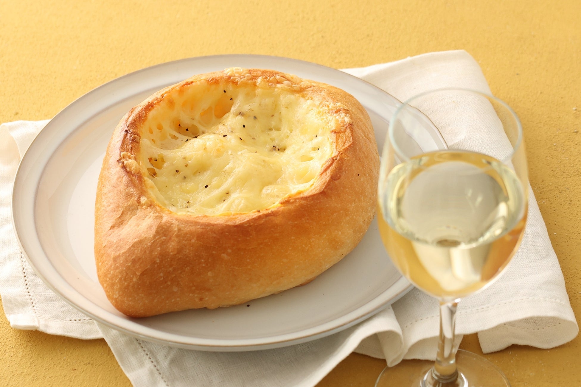チーズのコクが白ワインの爽やかな酸でさっぱりと整い、果実の「やわらかな甘さ」と「軽やかさ」の余韻が残ります。パンのブラックペッパーがアクセントとなりワインのフレッシュ感を引き立てます。