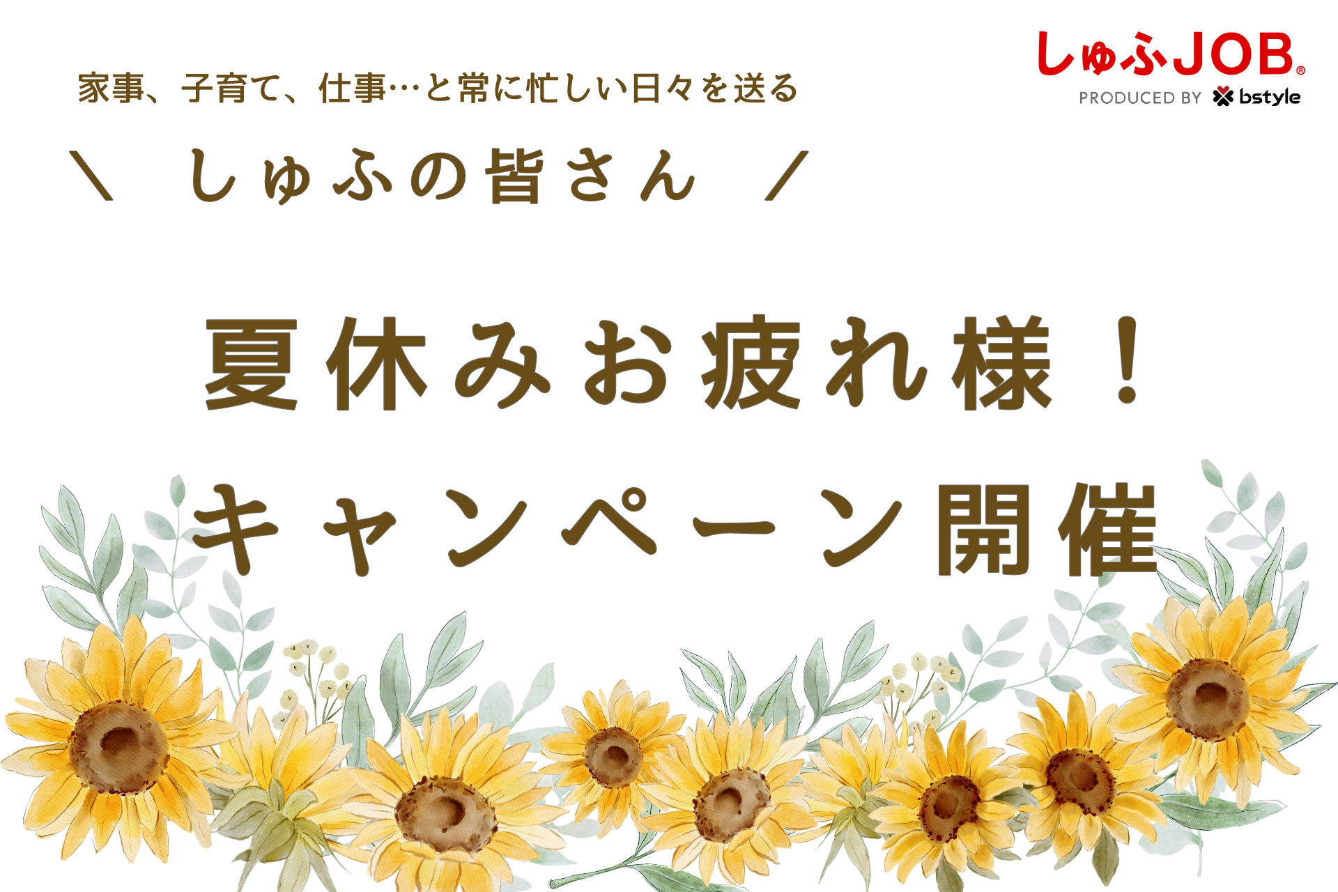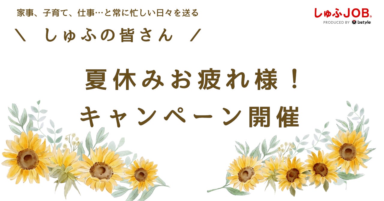 ビースタイルグループで求人サイト『しゅふJOB』を運営する株式会社ビースタイル メディア(本社:東京都新宿区、代表取締役社長:石橋聖文)は、2024年9月6日(金)から、夏休みも普段と変わらず家事や子育て、仕事等と忙しい日々を送られたしゅふの皆さんに「お疲れ様でした」の気持ちを込めて、家事に役立つ便利グッズが当たるキャンペーンを始めました。