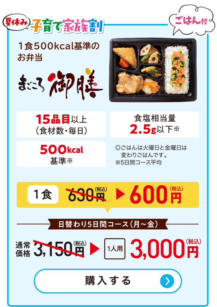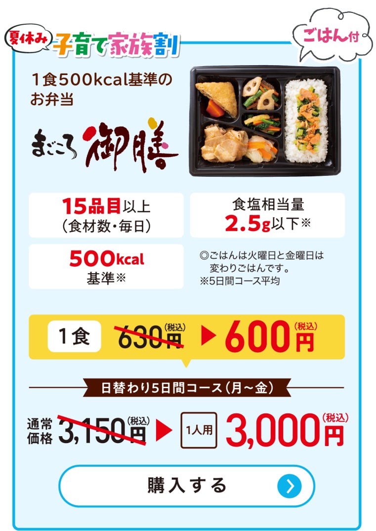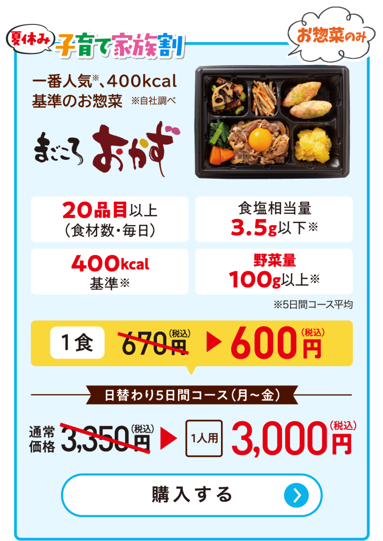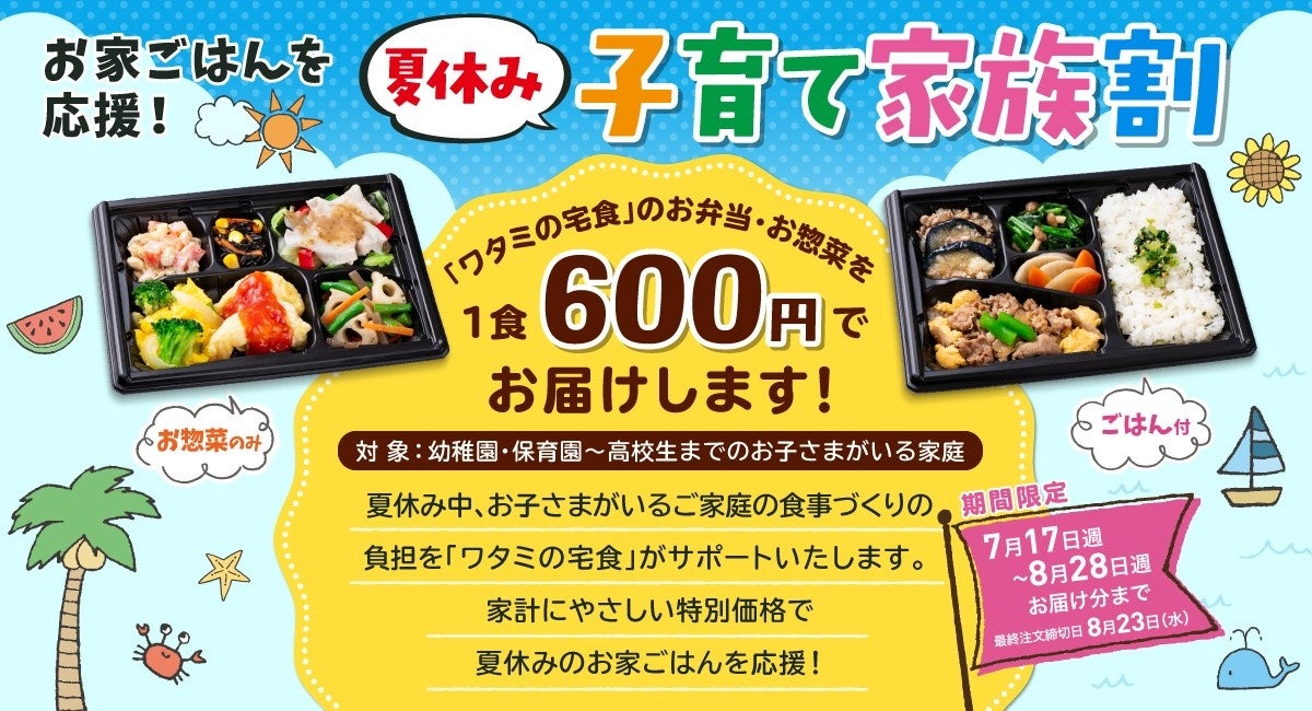「ワタミの宅食」 7月17日週からは「夏休み子育て家族割」を開催!!