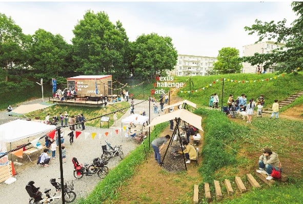 2022年4月、川崎市と横浜市の市境近辺にある虹ヶ丘団地、すすき野団地エリアに、多世代交流や地域のコミュニティ形成を図り、共感・共助を生み出す地域コモンズ拠点として「nexusチャレンジパーク早野」を開業しました。緑豊かな約8,000㎡の敷地に、シェアリング型のコミュニティIoT農園や焚火ができるエリア、地産地消マルシェや地域住民によるイベントなどの多目的利用が可能な空間を設け、地域住民が日常的に自由に活用できる場として運営。住民や地域の農家、学校、企業、行政などのバディが集まってつながり、生活者起点での魅力的な街の仕掛けづくりに挑戦しています。