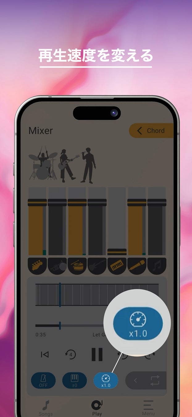 -再生速度変更機能:テンポを落として細かいフレーズの練習が可能