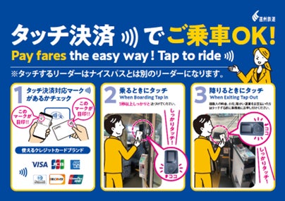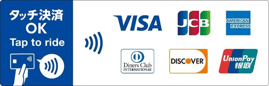 クレジットカードやデビットカード等のタッチ決済のご利用により、事前にICカードへのチャージやきっぷの購入をすることなく、お手持ちのタッチ決済対応のカードや、同カードが設定されたスマートフォン等でスムーズにバスにご乗車いただけます。