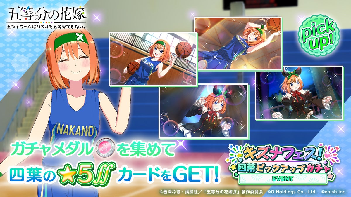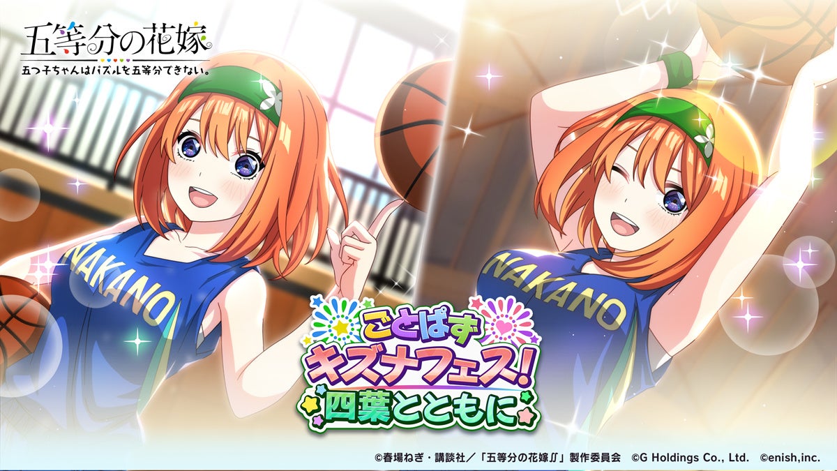 株式会社enish(本社:東京都港区、代表取締役社長:安徳 孝平、以下enish)は、2024年11月13日(水)より、アニメ「五等分の花嫁」初となるゲームアプリ『五等分の花嫁 五つ子ちゃんはパズルを五等分できない。』にて、「ごとぱずキズナフェス!・四葉とともに」を開催いたします。