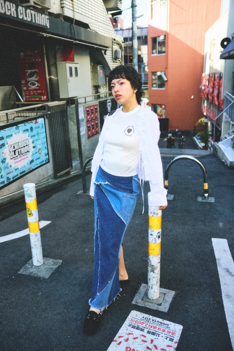 第16弾となる今回は、NO PANTIES氏との共同制作が実現しました。旅先のインスピレーションから「ピンナップガール」のイメージイラストなど、NO PANTIES氏がPROJECT Uのために描き下ろした古き良きアメリカの空気感のあるグラフィックアートを、MOUSSYらしいワークテイストなデニムジャケットやオーバーサイズTシャツ、ワンピースに落とし込みデザインしたコレクションが完成。
