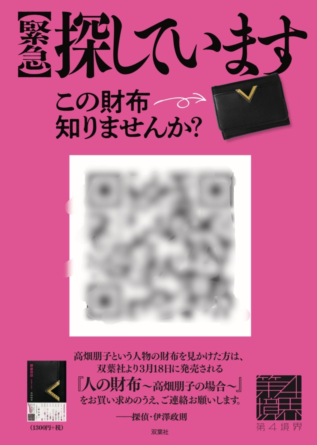 登場人物とメールができる‼ 第四境界の財布型小説『人の財布~高畑朋子の場合~』の謎のポスターが書店に……
