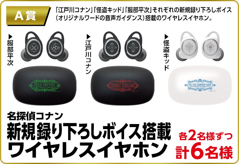 賞品 :【A賞】名探偵コナン 新規録り下ろしボイス搭載ワイヤレスイヤホン 6名様