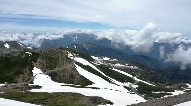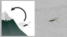 隣接する環境は、資源や動物の移動を介して密接につながっています。一次生産(注1)が少ない高山帯(図1)では、消費者は乏しい餌資源環境のもとで生活することを強いられています。高山帯では、鳥類が残雪上に落下した節足動物を採食することが観察されます(図2)。それらの残雪上に落下した節足動物は、山麓の森林で発生し、風や飛行により高山帯に運ばれたと考えられています(図3)。