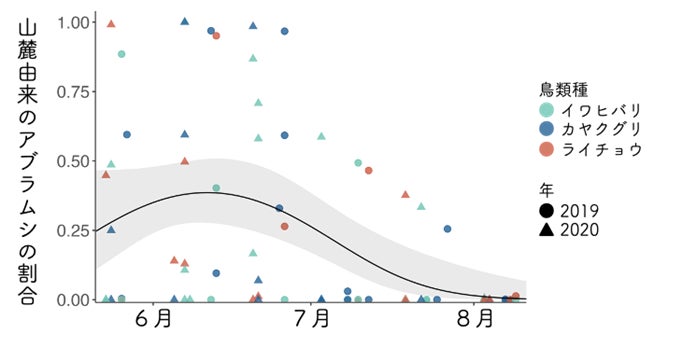 これらの成果は、高山帯と周囲を取り囲む森林がアブラムシの輸送を介して密接につながっていることを示しており、それらのアブラムシが高山性鳥類の繁殖に重要な役割を果たしている可能性を示しています。