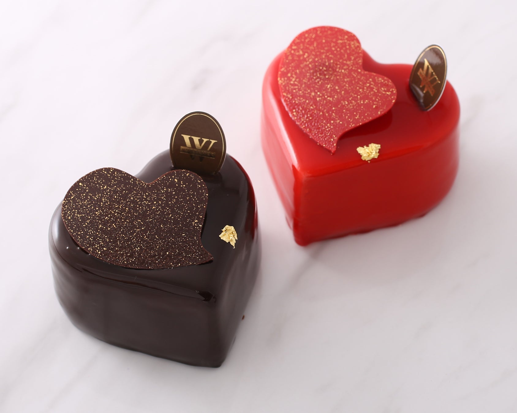 お一人用サイズのケーキでは、艶やかな黒色の『クール・ショコラ ノワール』と真っ赤な『クール・ショコラ ルージュ』。2 つのハートのケーキをご用意しました。