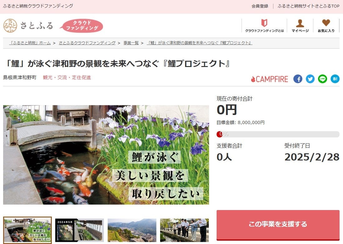 島根県津和野町とさとふる、地球温暖化や病気により激減した鯉の飼育環境を整備し再び「鯉が泳ぐ町」を復活するため、寄付受け付けを開始