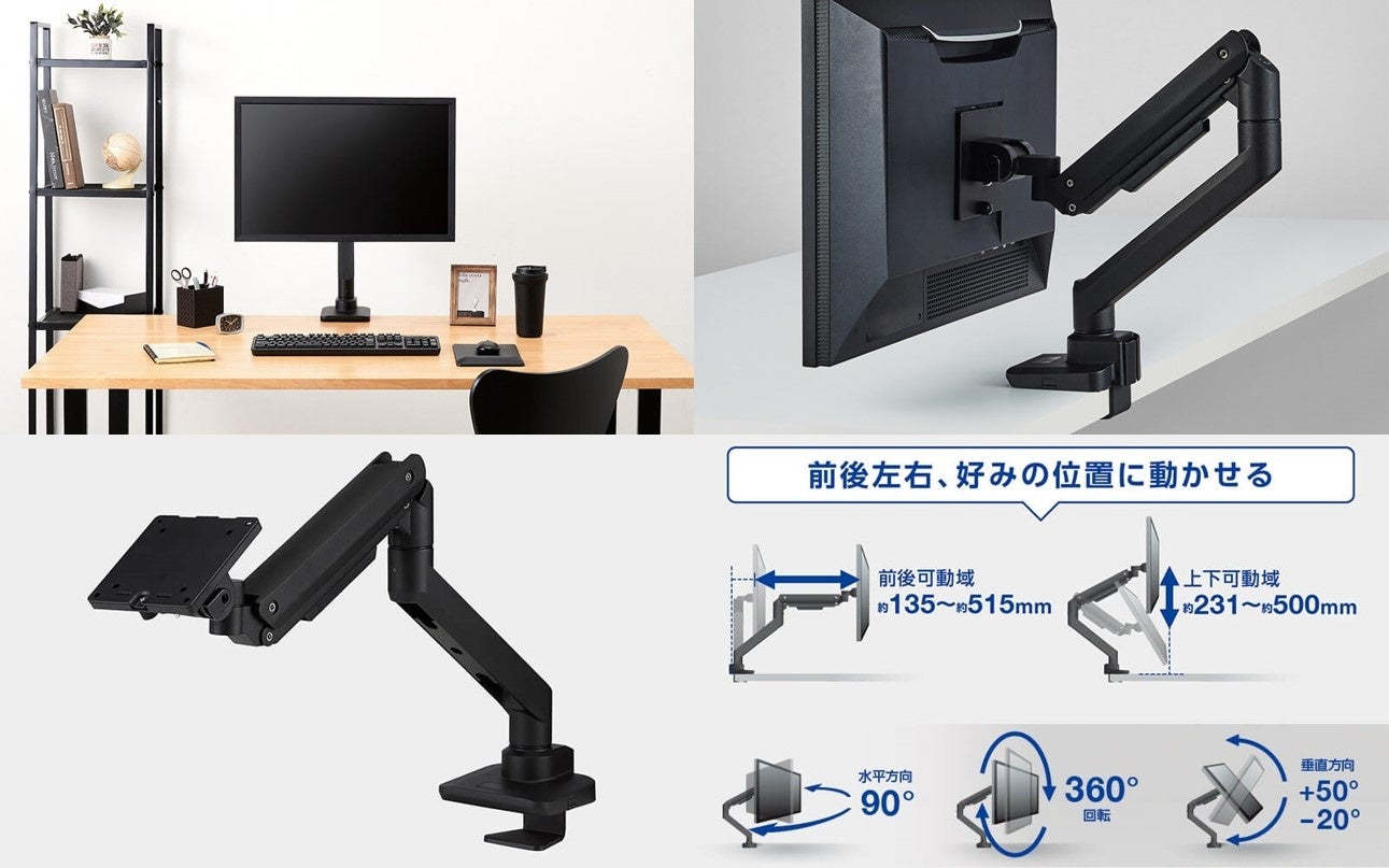 49インチ・約20kgまでの大型モニターに対応!モニターの位置を自由に調整できるガススプリング式モニターアーム 2モデルを新発売