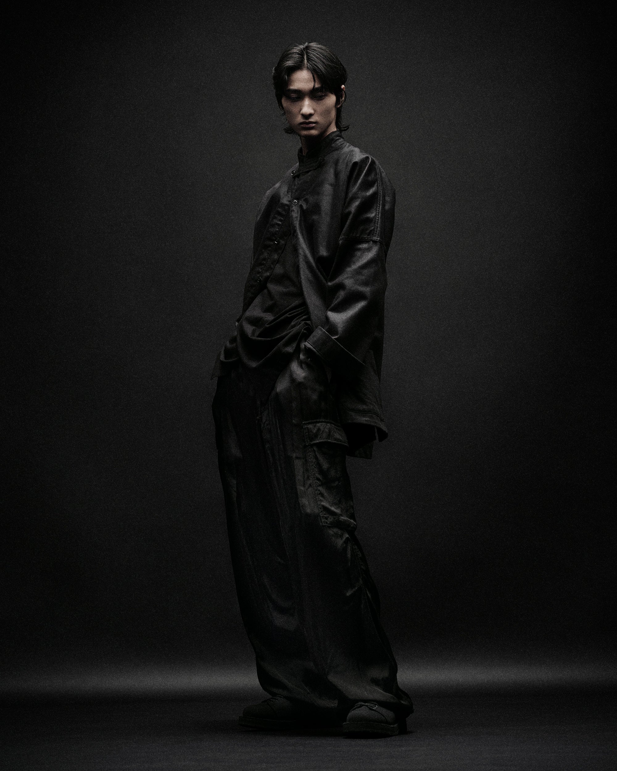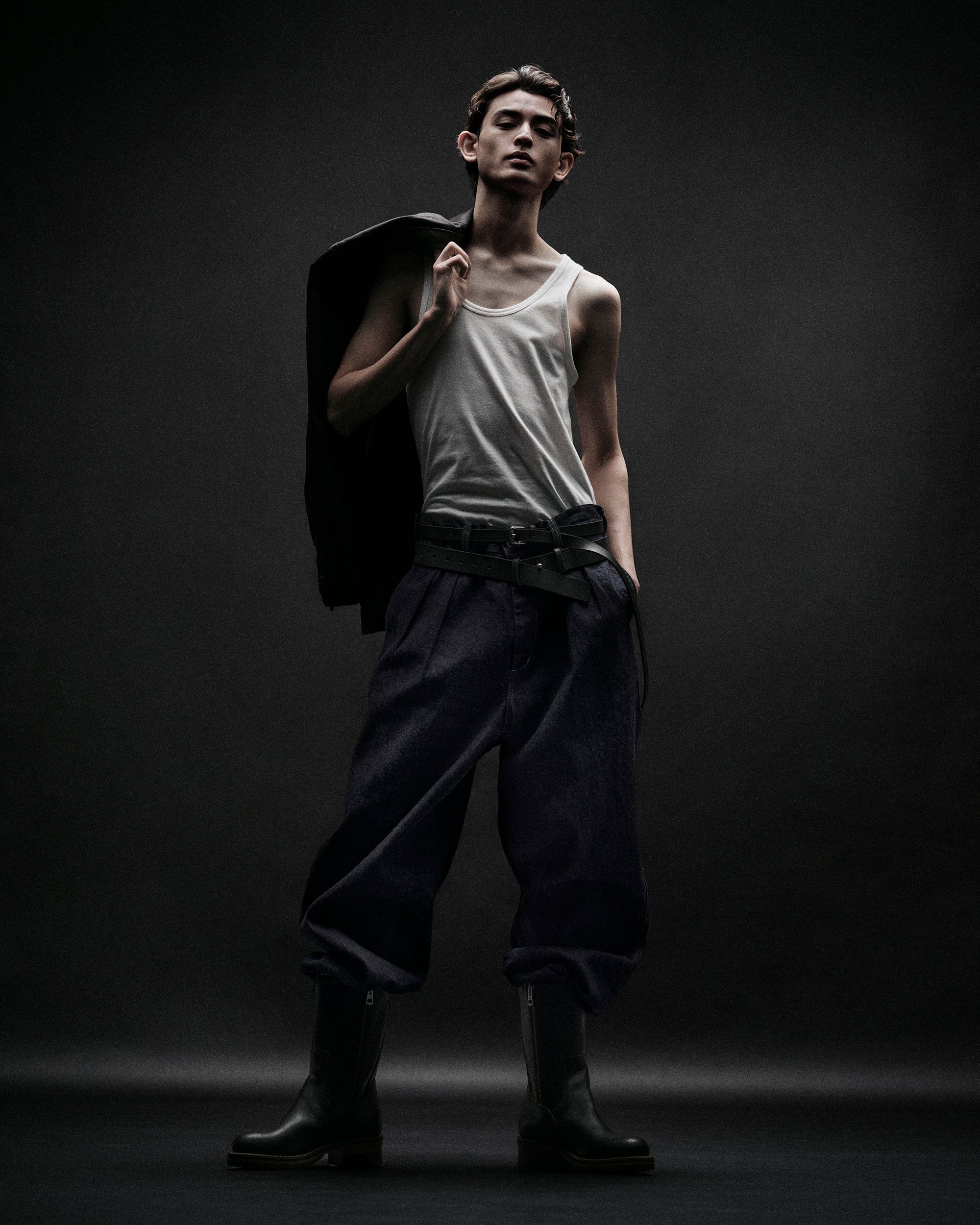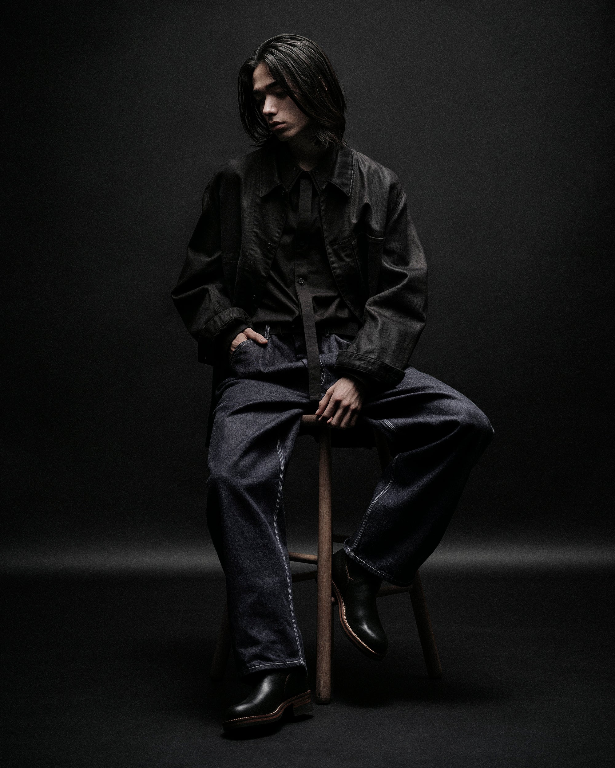 本作のコラボレーションではGround YのパターンメイキングやEDWINのジーンズをベースに白のステッチワークが映えるインディゴデニムと無骨なブラックツイルで登場します。 デニムやツイルのハードな生地はワークテイストに仕上げ、カバーオールやワークジャケット、ペインターパンツなどGround Yらしいゆったりとしたシルエットで表現しました。