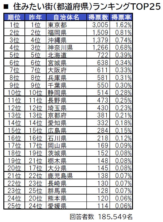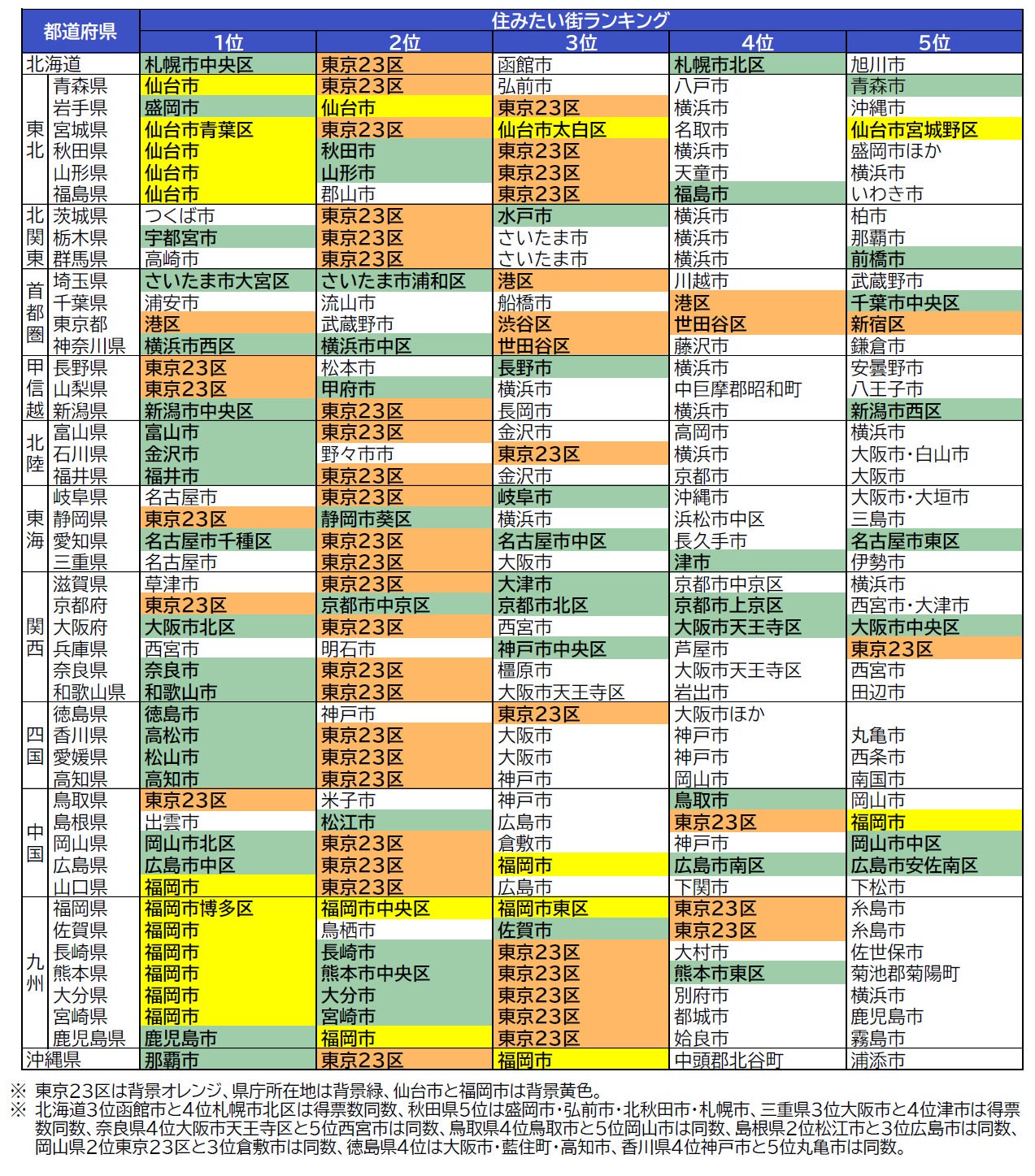 ※「住みたい街(都道府県)ランキング」は、住みたい街(自治体)への投票を都道府県毎に合計してランキングを作成しています。