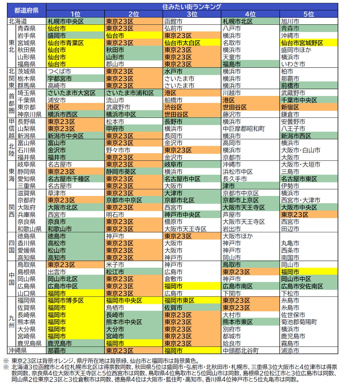 •「住みたい街(都道府県)ランキング」は、住みたい街(自治体)への投票を都道府県毎に集計してランキングを作成しています。