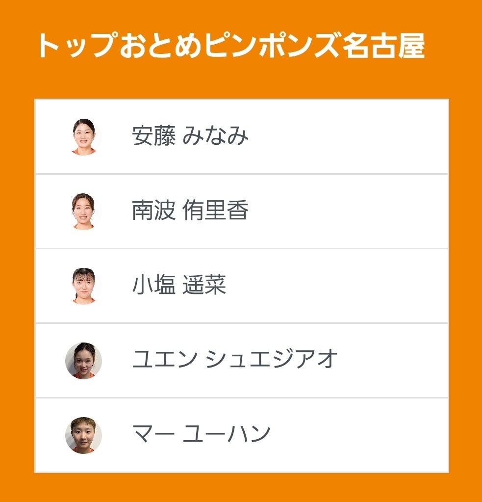 ノジマTリーグ2023-2024シーズン公式戦 7月30日(日)14:00試合開始 木下アビエル神奈川 vs トップおとめピンポンズ名古屋 ベンチ入り選手発表