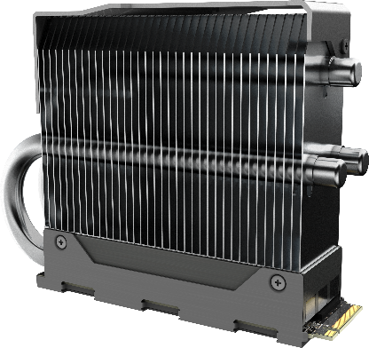 ●ヒートパイプを採用し、スムーズな熱移動を実現した大型ヒートシンクでSSDをしっかりと冷却